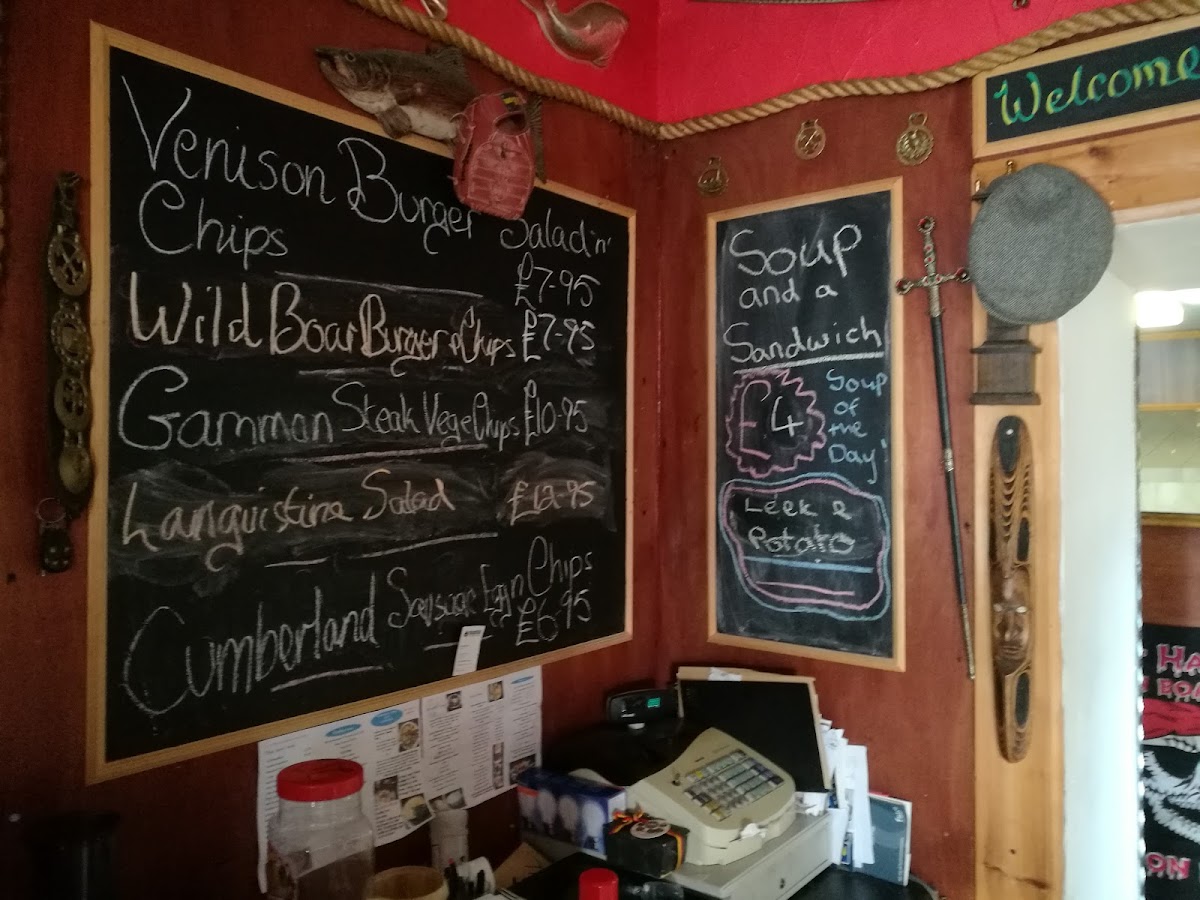 “ The only place to get the best Fish and Chips in SW Scotland. Fresh locally caught fish by the owners, perfectly crispy battered with proper homemade chips, peas and an artful salad. All the seafood is caught locally and meals cooked to perfection. The cafe is like a dark smugglers inn! No frills and fancy ....except for the food which is 5 star all the way. This is not fast food so prepare to wait, as everything is freshly cooked and one amazing lady does pretty much everything. Definitely worth the drive to Drummore. ”